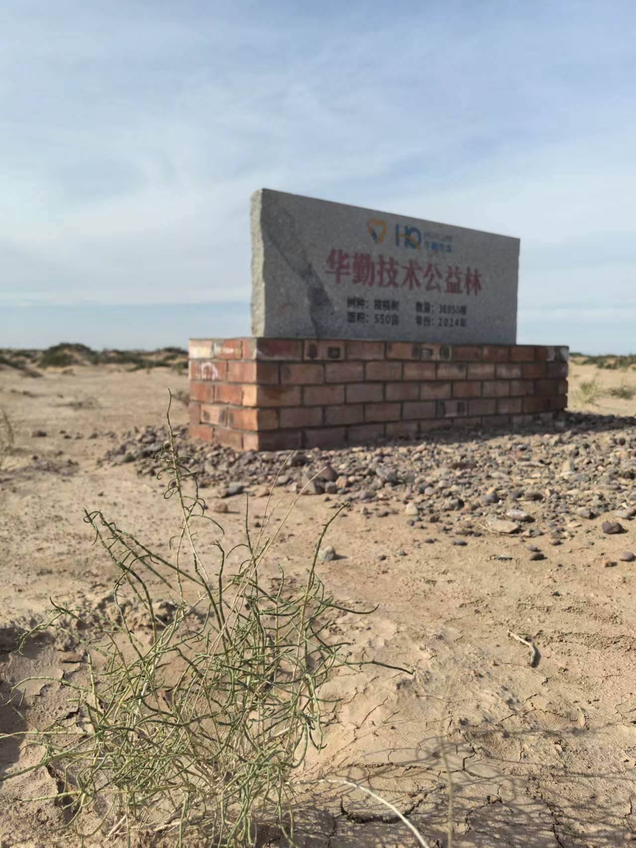 プロジェクト概要:Huaqinは「1兆本の植林イニシアティブ」に応え、2023年より甘粛省民勤県で「Huaqin公益林」プロジェクトを継続実施しています。延べ約36.7ha)の防風砂防林を造成し、サクサウールと花棒(9:1の混植)計36,850本を植栽し、2024年末時点での活着率は92.6%に達しました。河西回廊の環境安全性を効果的に保証し、砂漠化の要因を抜本的に減少・解消するとともに、生態系サービスの産業化を実現し、企業の社会的責任を全面的に実践しています。
